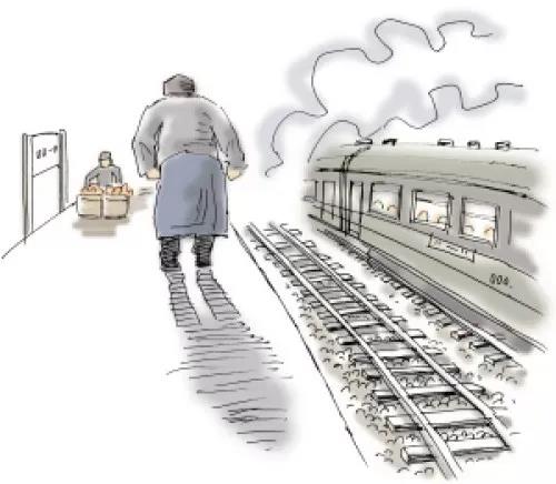 我说道:“爸爸,你走吧。”他往车外看了看,说:“我买几个橘子去。你就在此地,不要走动。”我看那边月台的栅栏外有几个卖东西的等着顾客。走到那边月台,须穿过铁道,须跳下去又爬上去。父亲是一个胖子,走过去自然要费事些。我本来要去的,他不肯,只好让他去。我看见他戴着黑布小帽,穿着黑布大马褂,深青布棉袍,蹒跚地走到铁道边,慢慢探身下去,尚不大难。可是他穿过铁道,要爬上那边月台,就不容易了。他用两手攀着上面,两脚再向上缩;他肥胖的身子向左微倾,显出努力的样子。这时我看见他的背影,我的泪很快地流下来了。我赶紧拭干了泪。怕他看见,也怕别人看见。我再向外看时,他已抱了朱红的橘子往回走了。过铁道时,他先将橘子散放在地上,自己慢慢爬下,再抱起橘子走。到这边时,我赶紧去搀他。他和我走到车上,将橘子一股脑儿放在我的皮大衣上。于是扑扑衣上的泥土,心里很轻松似的。过一会儿说:“我走了,到那边来信!”我望着他走出去。他走了几步,回过头看见我,说:“进去吧,里边没人。”等他的背影混入来来往往的人里,再找不着了,我便进来坐下,我的眼泪又来了。